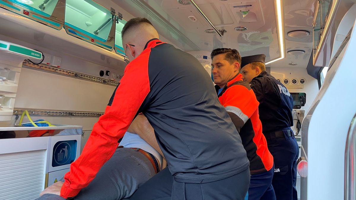 Podczas szkolenia ratownicy medyczni, pielęgniarki i lekarze mieli okazję poznać wybrane sposoby reagowania w sytuacjach kryzysowych, a także przećwiczyć zastosowanie podstawowych technik samoobrony. Instruktorzy policji omówili również zasady postępowania w przypadku agresywnego zachowania wobec personelu oraz sposoby minimalizowania ryzyka eskalacji konfliktu. Ćwiczenia rozpoczęto w warunkach rzeczywistych – w karetce, gdzie uczestnicy mogli sprawdzić, jak reagować w ograniczonej przestrzeni podczas udzielania pomocy pacjentowi. Następnie szkolenie przeniesiono na salę ćwiczeniową, gdzie trenowano m.in. podstawowe chwyty obronne, reakcje na nagłe ataki oraz bezpieczne metody uwalniania się z uchwytu. Dzięki temu uczestnicy mogli przećwiczyć sytuacje, które w codziennej pracy mogą zdarzyć się niespodziewanie, np. podczas kontaktu z osobą pod wpływem alkoholu, środków odurzających czy w silnym wzburzeniu emocjonalnym.