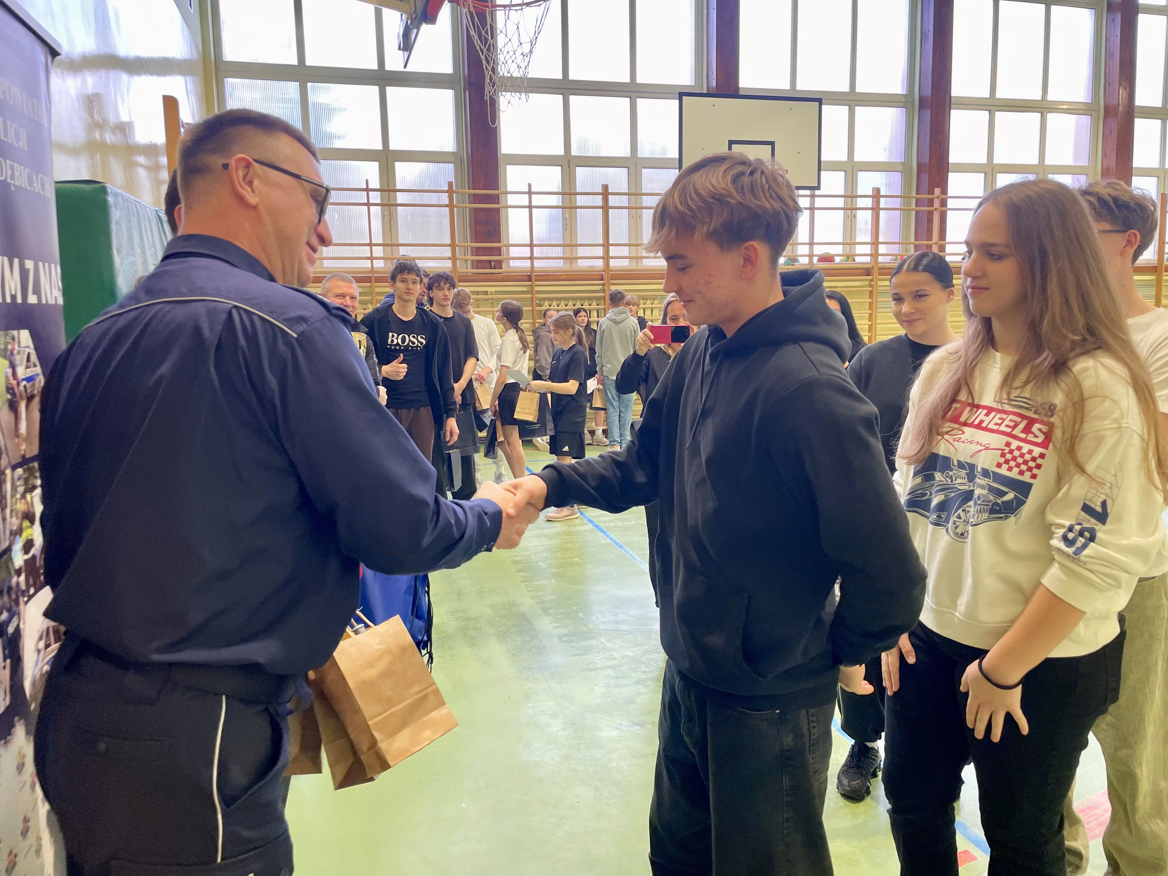 Podczas wydarzenia obecny był podinspektor Robert Granosik – pełniący obowiązki I Zastępcy Komendanta Powiatowego Policji w Poddębicach. Wręczył on uczestnikom upominki, pogratulował wysokiego poziomu przygotowania oraz podkreślił, że zwycięstwo w etapie powiatowym może być pierwszym krokiem do rozpoczęcia kariery w Policji. Zachęcił młodzież do składania dokumentów aplikacyjnych i wstępowania do służby.