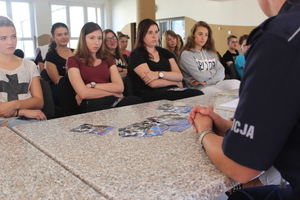 Policjanci z Poddębic przeprowadzili spotkanie w Zespole Szkół Ponadgimnazjalnych. Podczas prelekcji omawiano specyfikę pracy w mundurze oraz przypomniano zasady odpowiedzialnego zachowania w szkole i w domu.