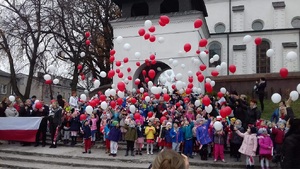Policjanci z Komendy Powiatowej Policji w Poddębicach zadbali o bezpieczeństwo najmłodszych podczas wspólnego śpiewania hymnu narodowego na Placu Kościuszki w Poddębicach.