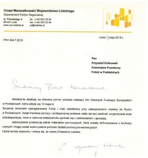 Za pomoc w realizacji Dni Otwartych Funduszy Europejskich w Poddębicach