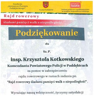 Za pomoc w zabezpieczeniu rajdu rowerowego
