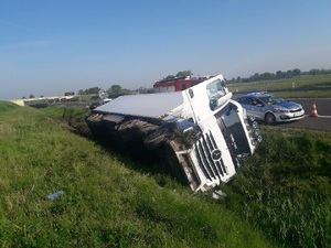 11 maja 2018 roku policjanci z KPP w Poddębicach wyjaśniali okoliczności zdarzenia drogowego do którego doszło na autostradzie A2 w miejscowości Biała Góra. Tir przewożący mięso wjechał do przydrożnego rowu.