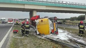 Cysterna z paliwem uderzyła w wiadukt na A2