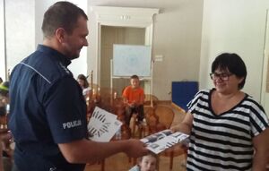Policjanci z Poddębic spotkali się z dziećmi, które swój wolny czas wakacyjny spędzają w Domu Kultury. Podczas prelekcji omówiono zagadnienia związane z bezpiecznym wypoczynkiem nad wodą a także zagrożeniami jakie mogą ich spotkać podczas wakacji. Dzielnicowy przedstawił opiekunom dzieci założenia programu „Dzielnicowy bliżej nas”, działanie „Krajowej Mapy Zagrożeń Bezpieczeństwa” oraz aplikacji „ Moja Komenda”.